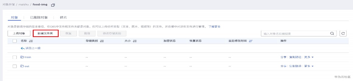1.在华为云的对象存储服务(OBS)中创建一个桶