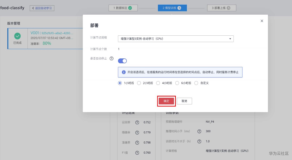 训练完成,点击部署