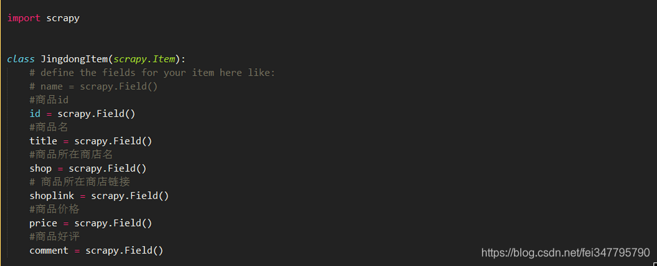 创建一个crawl爬虫,爬取京东的商品信息,并且写入数据库中。