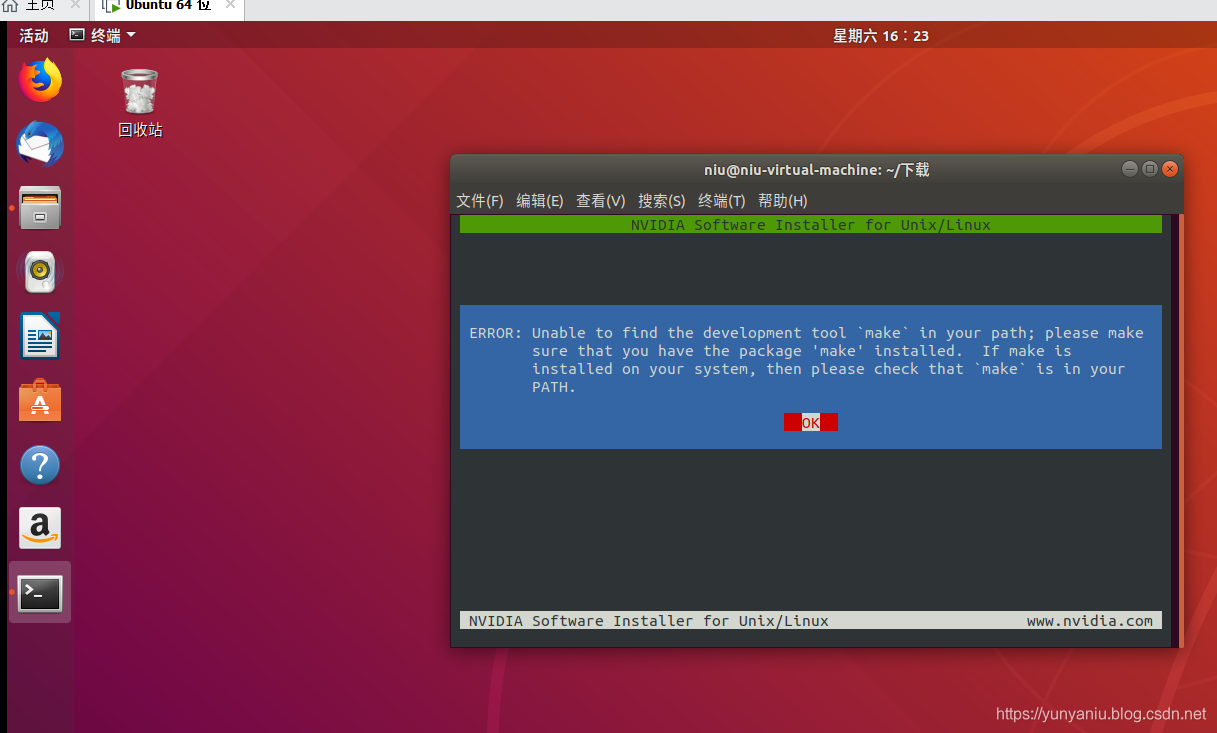 NVIDIA Unix/Linux软件安装程序错误:无法在您的路径中找到开发工具“make”;请确保您已安装软件包“make”。如果您的系统上安装了make,那么请检查“make”是否在您的路径中。