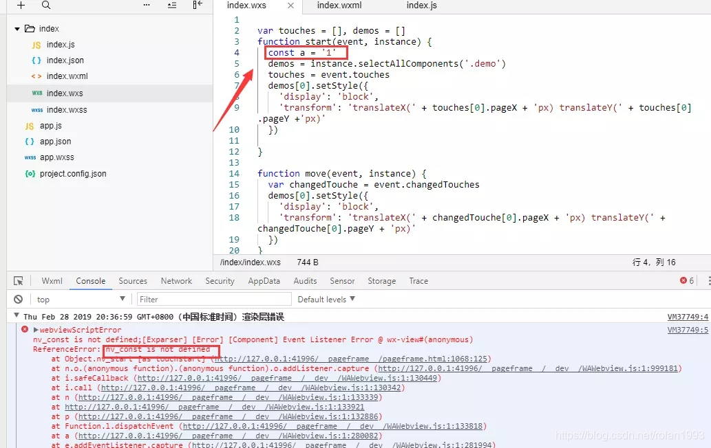 从基础库 2.4.4 开始支持 WXS响应事件 直接上代码,本人菜鸟,代码写的很乱: