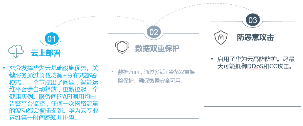 数据方面,通过多活+冷备双重保险保护,确保数据安全可用。同时,启用华为云高防防护,尽最大可能抵御DDoS和CC攻击。