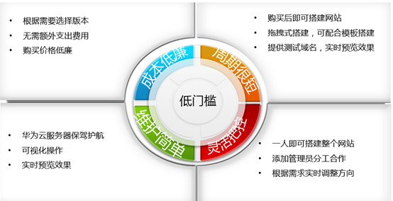 时间紧、任务重,按部就班肯定来不及,李小白想到了一个好法子——模板建站。对比了多家之后,李小白最终选择了高性价比的华为云云速建站服务:无需IT技术,不需要购买服务器,提供高达3000+的模板,覆盖60+行业,直接快速拖拽就能生成网站。并且价格很低,只需要398元/年起,华为云还支持五天无理由自助退订,李小白直接购买了企业版,先上“车”再补票。