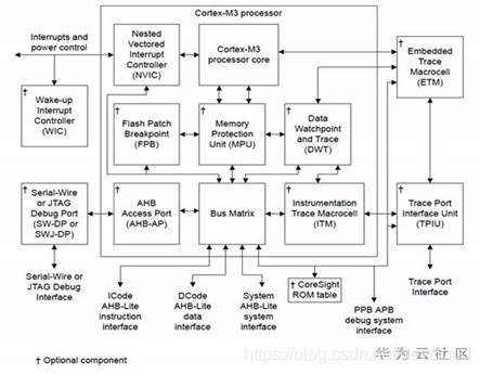 其中常见的有NVIC中断控制器,内核包括了r0-r15寄存器、pc寄存器等等,所以我们要查询上图中给出的内核相关外设的信息需要去查阅arm公司提供的参考手册,例如《Arm cortex-M3参考手册》。