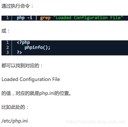 但是也可能遇到:使用 PHP 函数 phpinfo() 来查看,上面写 php.ini 目录是 /usr/local/php/lib,可是进这个目录看了也没有。