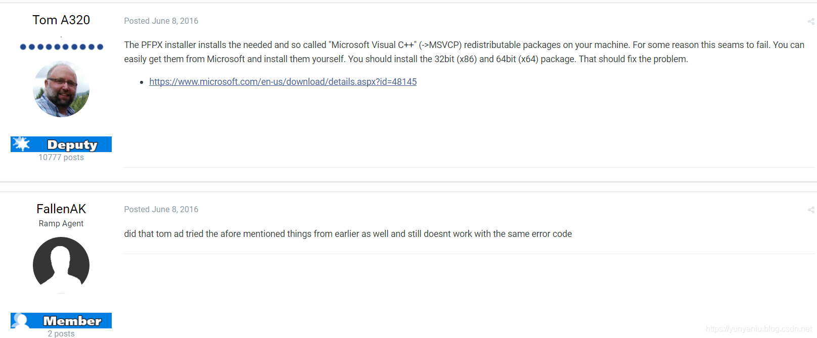 参考国外网友的解答:https://forum.aerosoft.com/index.php?/topic/112777-error-cannot-findmsvcp140dll/