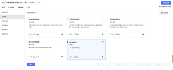 在cc-Code4Benchmark任务中,通过“设置”来配置自定义的规则集rs-npe-java,如图5所示。
