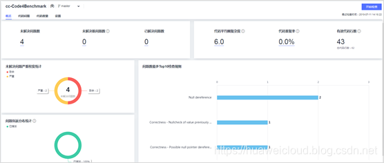 在cc-Code4Benchmark任务中,可以点击“开始检查”。在检查完成后,在“概览”页面查看检查结果,如图6所示。在概览中,我们可以发现检测出4个问题。