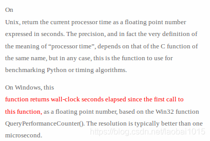 python 的标准库手册推荐在任何情况下尽量使用time.clock().但是这个函数在windows下返回的是真实时间(wall time)