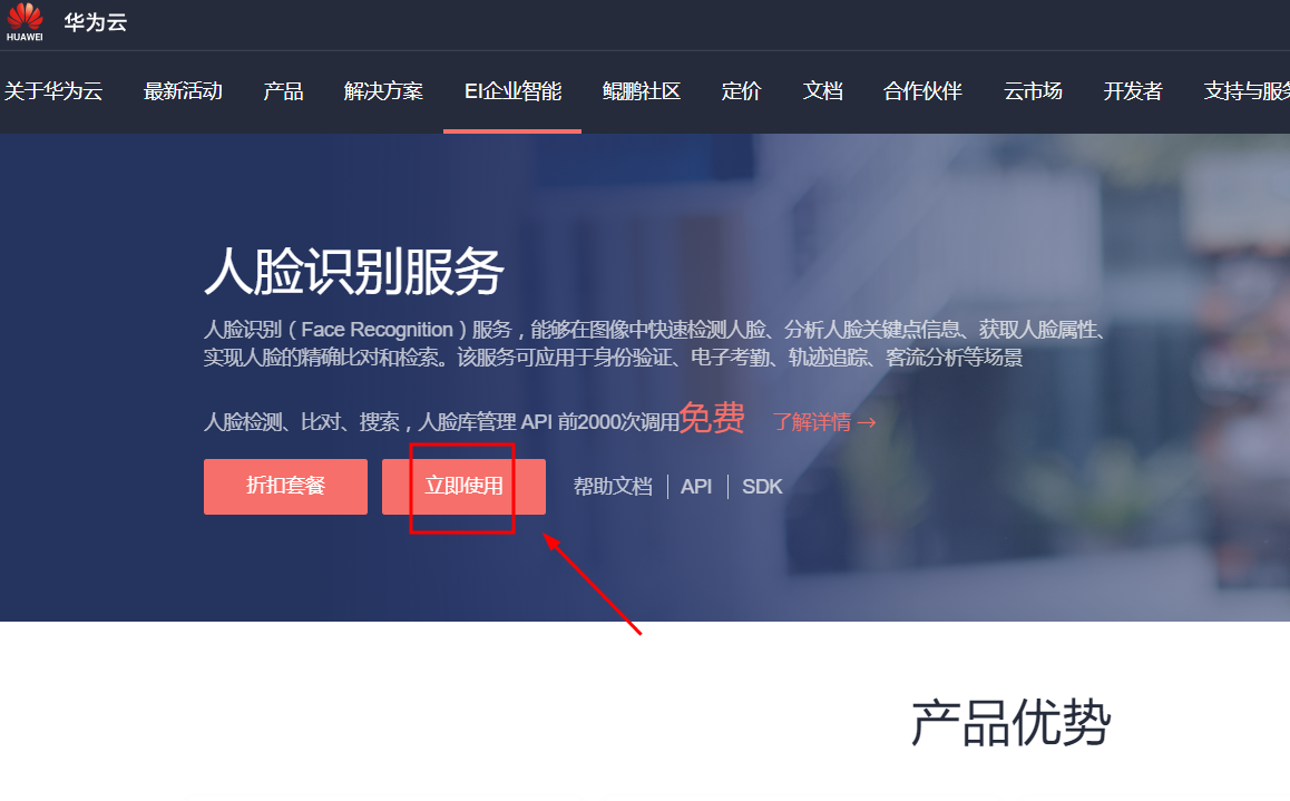 申请地址:https://www.huaweicloud.com/product/face.html