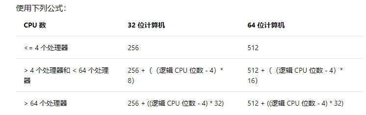 - sys.dm_os_workers:列出SQL Server所有工作线程,工作线程由scheduler创建,用于执行特定的任务,默认情况下,max worker threads=0,即动态,由SQL Server根据配置 max worker threads 服务器配置选项中的公式创建: