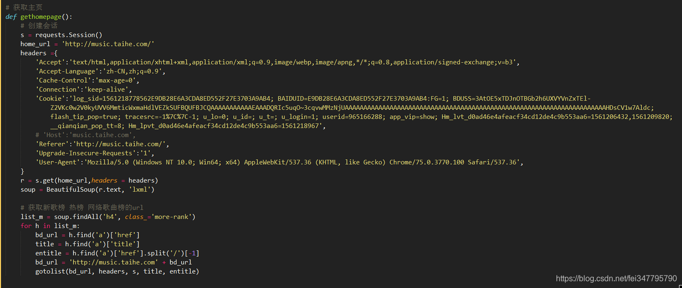 r = requests.get(music_url, timeout = 500)这行代码中的