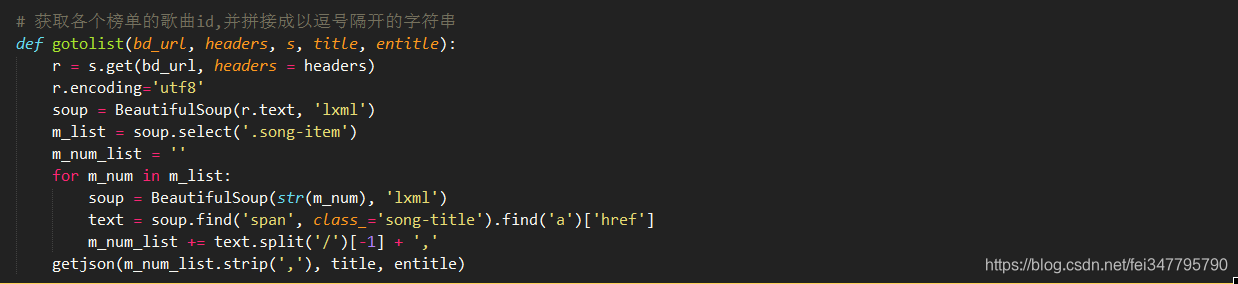 2.获取每个榜单中的每首歌曲的id