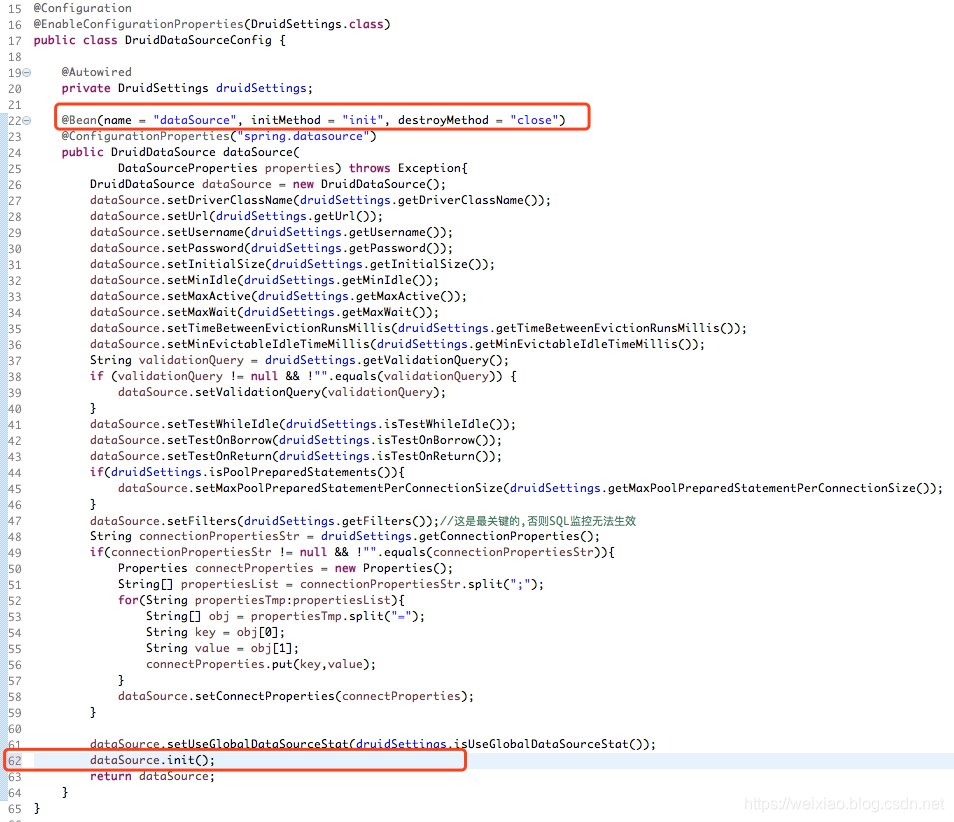 也可以创建 dataSource 后,显示的调用 init 方法。
