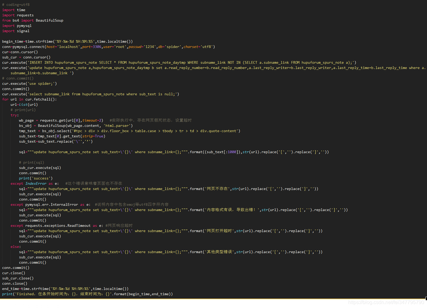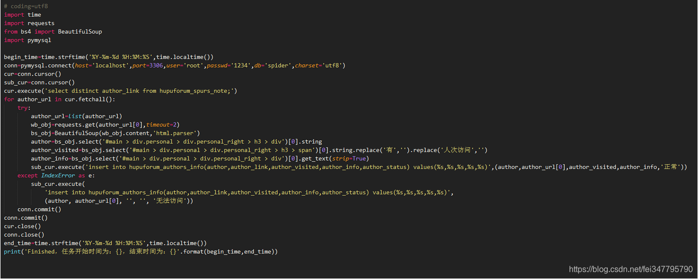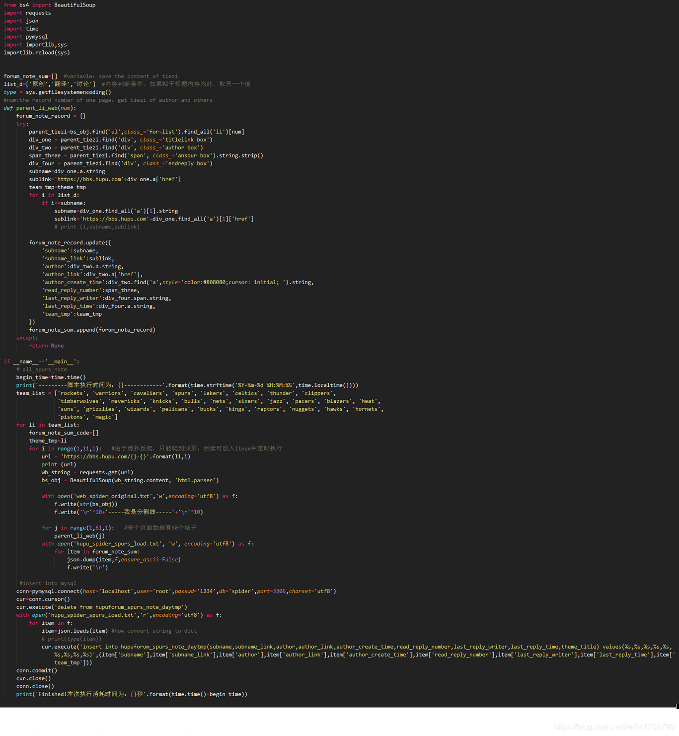 一共分为三部分:part1通过对当前链接进行分析,提取帖子作者、阅读的信息;part2取得帖子本身的内容;part3对发帖人进行数据提取,为后期分析提供思路。具体的脚本如下。需要注意的是:编码、编码、编码。谢谢!