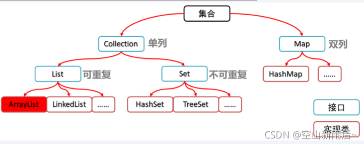 那么我们要注意的是List是作为集合接口存在的,也就是说List集合是无法被实例化,通过对象调方法的,那么我们应该想到,多态的方法来完成List集合的实例化,那么有很多类都是List集合的实例对象, 我们只介绍ArrayList集合和LinkedList集合。
