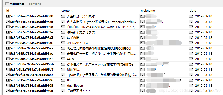 # 根据昵称和正文来查询信息,然后设置第三个参数为True.实现存在就更新,不存在就插入数据
