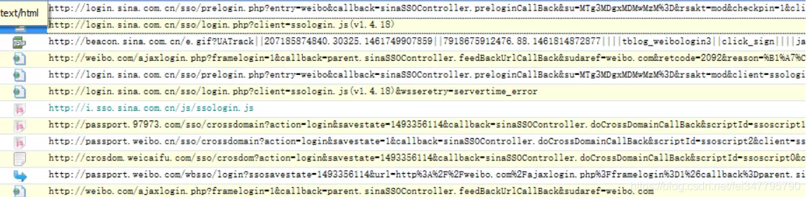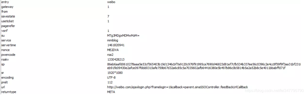 之后,便可以进行post提交,提交地址可以从抓包工具看到:http://login.sina.com.cn/sso/...。