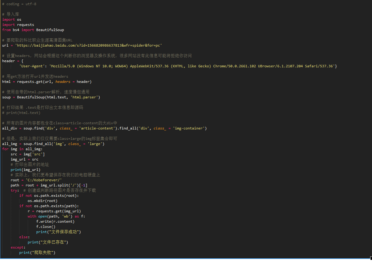 爬取目标网页:科比职业生涯高清图集 (来自百度网友分享)