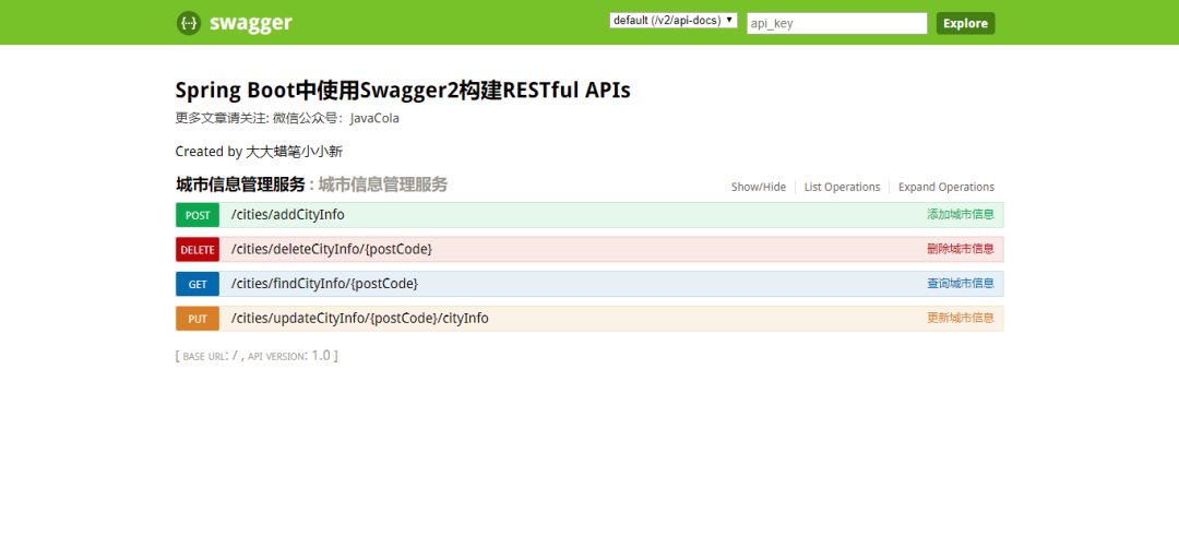 .description("更多文章请关注: 微信公众号:JavaCola ")