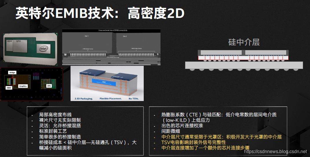 英特尔 EMIB(嵌入式多芯片互连桥接)2D 封装