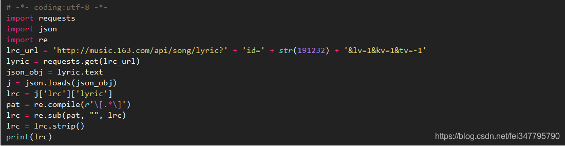 'http://music.163.com/api/song/lyric?' + 'id=' + str(191232) + '&lv=1&kv=1&tv=-1'