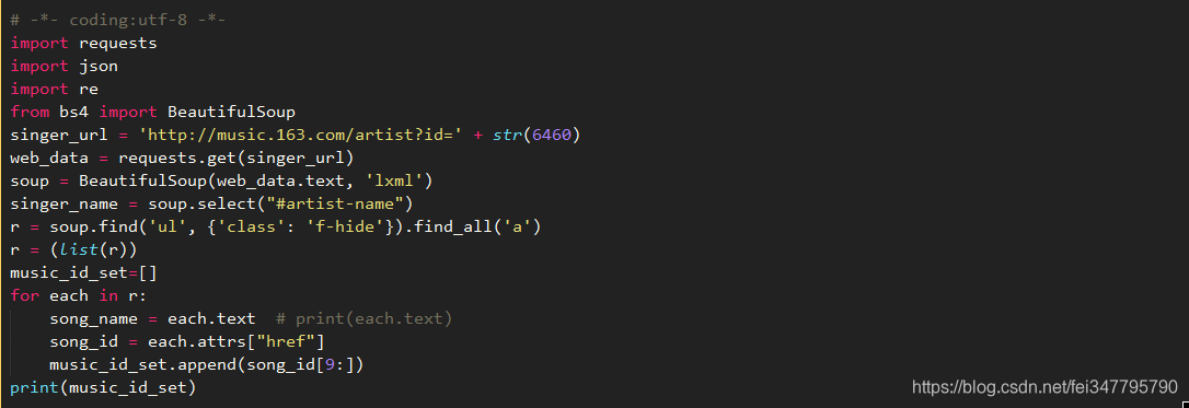 同样,经过一番筛我们找到了自己需要的东西,那就是一大串的music_id!说了这么多上代码