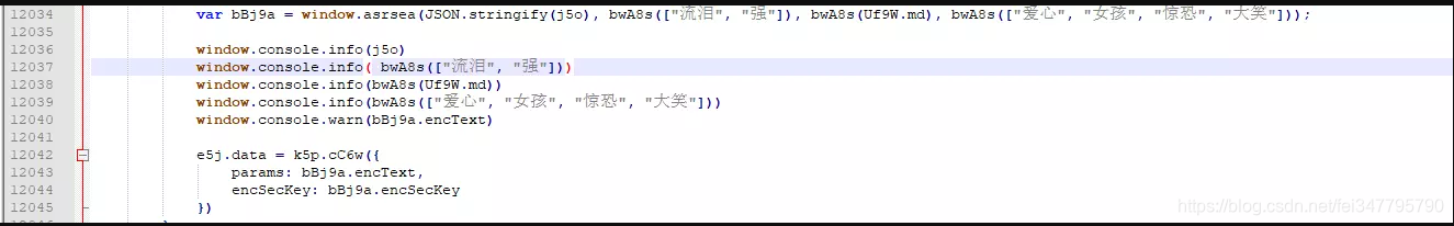 参数是搞明白了,但是如何加密还是不清楚,于是回到刚才的js文件中。追踪window.asrsea()函数,发现它指向一个叫d的函数,仔细研究许久后大概知道加密算法.