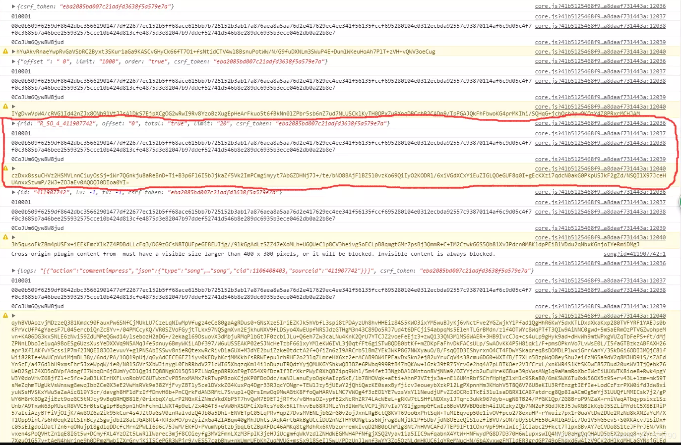 捣弄过后发现,请求链接中“R_SO_4_”后接的是歌曲的id,同一首歌下不同页数的动态包的请求链接除csrf_token外是相同的。