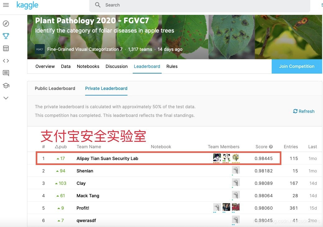 近日,计算机视觉A类顶级会议CVPR 2020 开幕在即, 由Kaggle承办的FGVC(Fine-Grained Visual Categorization,细粒度图像分类)全球挑战赛结果揭晓,支付宝天筭安全实验室夺冠,超越全球1316支顶尖计算机视觉团队。Kaggle是全球最大机器学习平台。