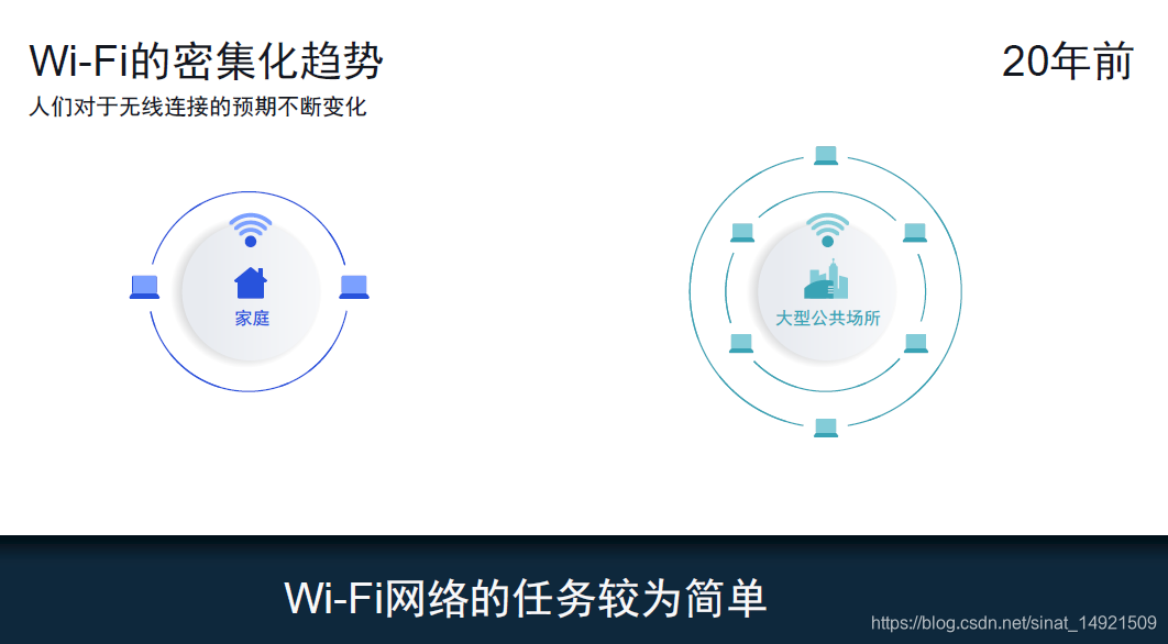 对此,来自 Qualcomm Technologies 产品经理叶思崑分享道,最初 Wi-Fi 的应用场景较为简单,在家庭网络环境下,Wi-Fi 仅用于为具备 Wi-Fi 功能的一两台设备而服务,譬如笔记本电脑。而当时的绝大多数笔记本电脑也需要通过 USB 接口或者扩展无线网卡才能连接到无线网络。在大型公共场所,Wi-Fi 也只需为少量早期移动办公者提供连接服务。