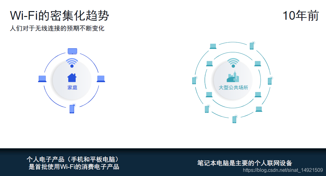 在 10 年前,随着智能手机和平板电脑的兴起,Wi-Fi 逐渐成为这些新兴设备重要的联网方式,无线路由器也随之进入更多家庭,也使得更多人、更多终端拥有了在公众场所连接互联网的能力。这时候习惯携带设备进行移动办公的用户可以不受场所的限制,实现“处处皆可办公”。